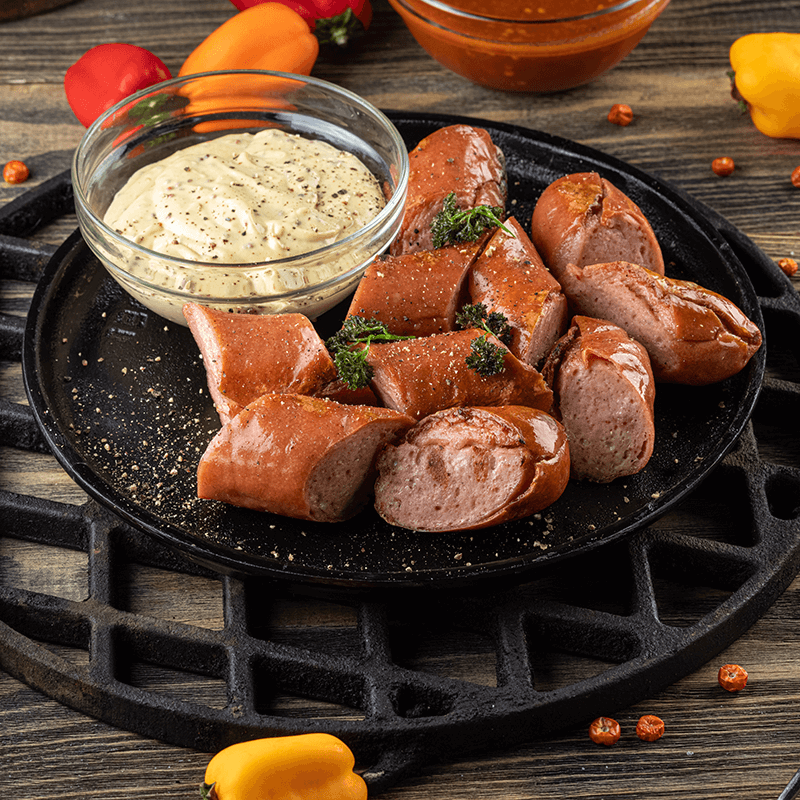 1.- Preparar el asador, a cada salchicha hacerle 4 cortes en diagonal sobre la superficie y asar, rotando las salchichas para una cocción uniforme