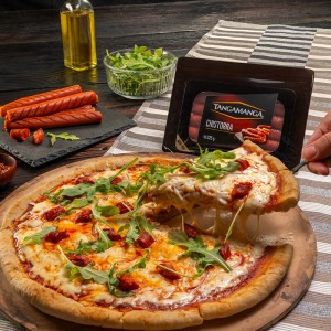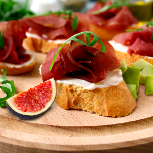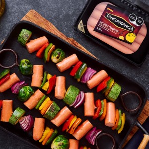1.- En cada una de las brochetas insertar 1 aceituna negra, 1 rebanada de pechuga de pavo horneada echa rollito, 1 cuadrito de queso manchego, 1 rebanada de pechuga de pavo horneada hecho rollito, 1 tomate Cherry, 1 hoja de albahaca y terminar con 1 aceituna verde.