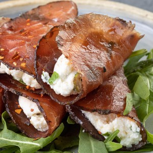 1. Unta una porción de Dip de pavo y pierna de cerdo Tangamanga sobre un pedazo de pan de centeno.