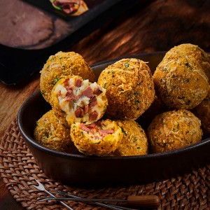 4. Para preparar los hongos portobellos, rellenarlos con 2 cucharadas grandes de la mezcla de la Salchicha Frankfurt y Pierna Selva Negra. agregar la cebolla con un poco de la salsa que resulta de la reducción y espolvorear con un poco de queso mozzarella.