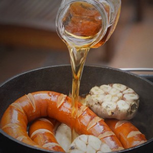 5.- Para las salchichas hacer 3 cortes diagonales sobre la superficie y colocarlas sobre la parrilla rotar continuamente para una cocción uniforme