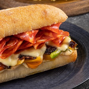 4. Agregar el Chorizo Español Tangamanga y jitomate deshidratado a la base del pan rústico.
