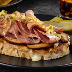 1.- Unta la base de abajo con suficiente mermelada de arándanos con chipotle.